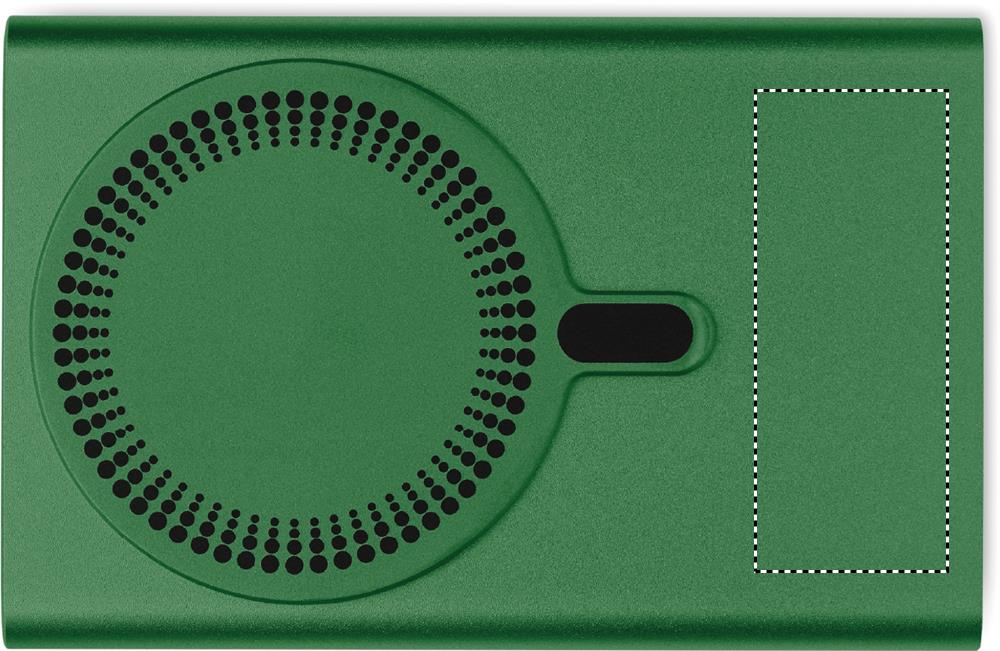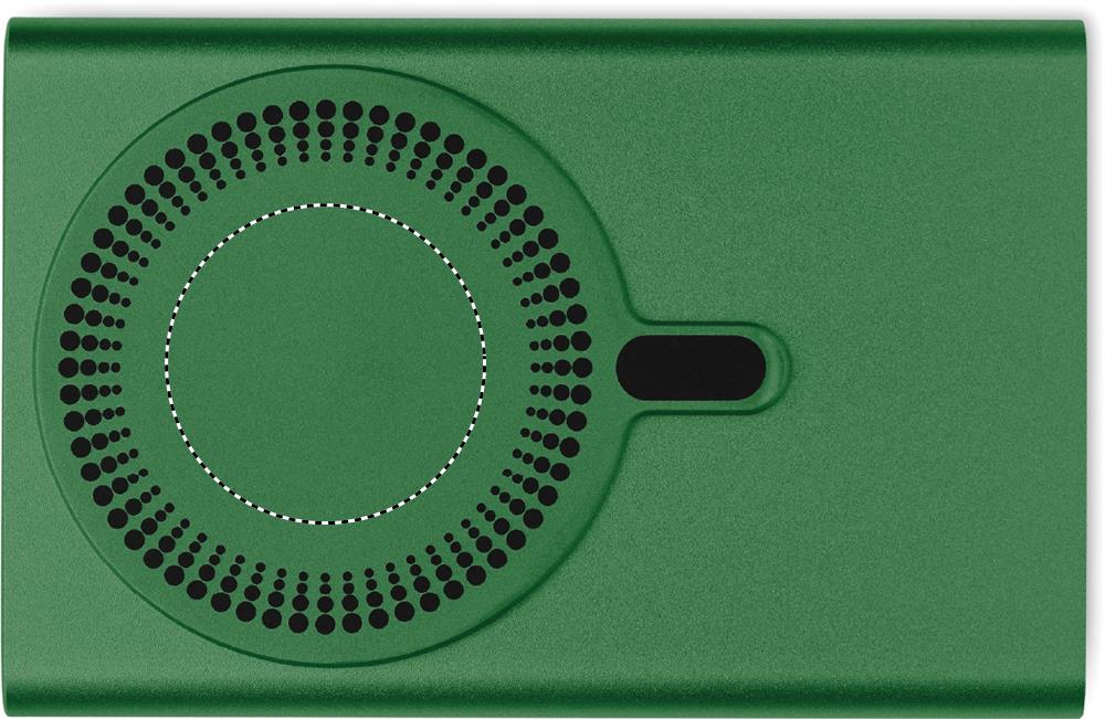 Magnetische draadloze oplader (15W) in gerecycled aluminium en powerbank (5000 mAh). Uitgang: DC 9V/1,66A. Ondersteunt bedrade snellaadtechnologie (20W). In-/uitgang: Type-C. Ondersteuning voor Power Delivery (PD) om de nieuwste laptop MacPro® op te laden. Inclusief een extra magnetische metalen ring voor het opladen van andere niet-magnetische draadloze oplaadbare telefoons.