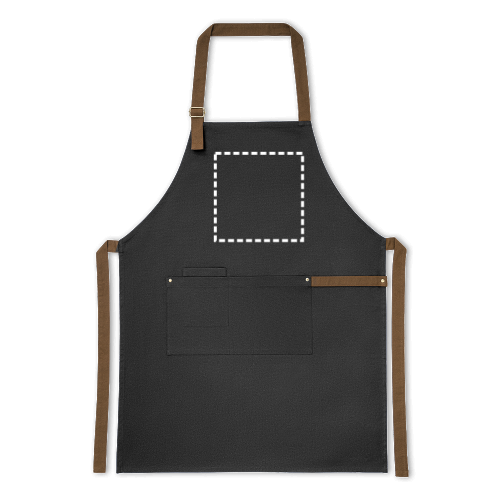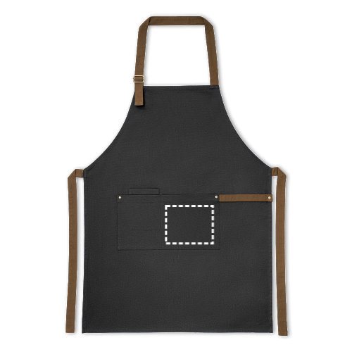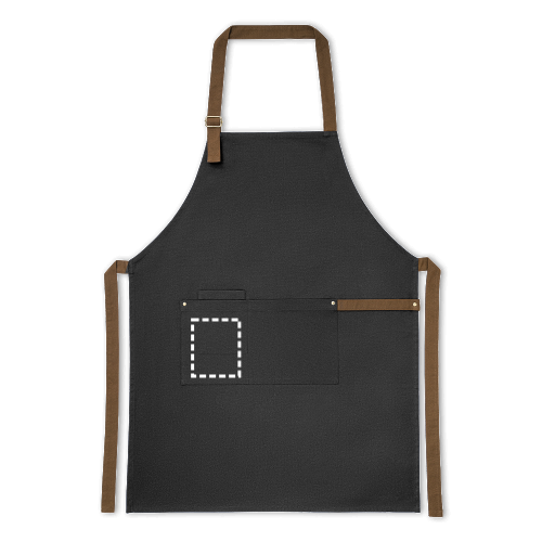 100% katoenen canvas schort (300 g/m²) met metalen details. Met 3 multifunctionele vakken en een zijstrook (om een theedoek op te hangen). Makkelijk verstelbare nekband. Geleverd met een geschenkdoos in kraft van FSC™ gecertificeerd materiaal en andere gecontroleerde materialen. Product geproduceerd onder een gecertificeerde standaard voor het gebruik van schadelijke stoffen in textiel. 680 x 900 mm | Doos: 240 x 320 x 70 mm