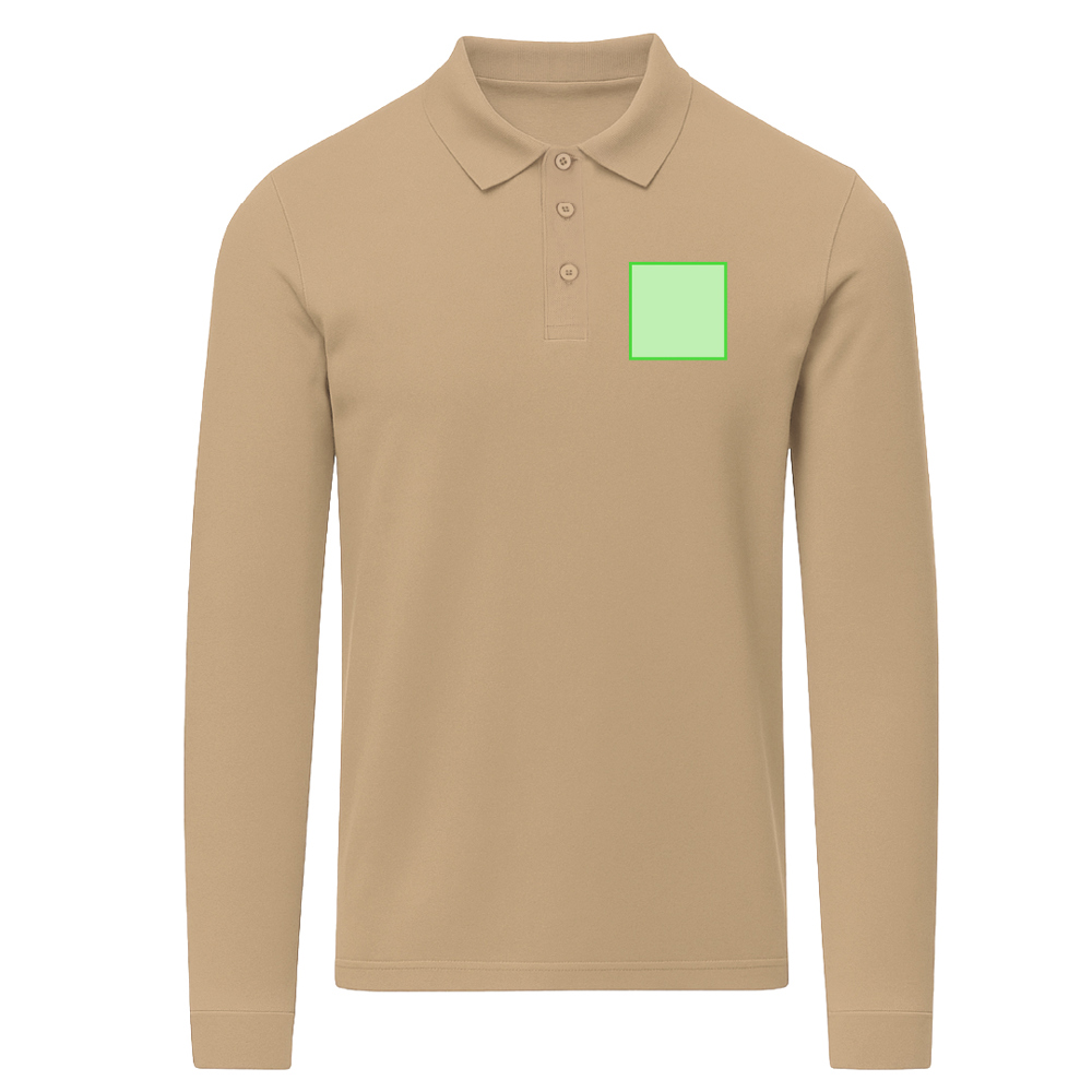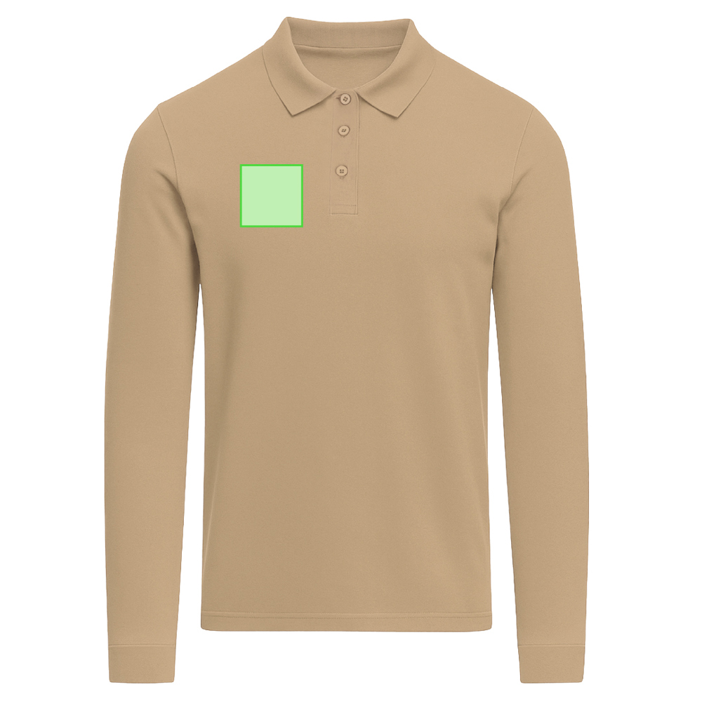 Unisex poloshirt met lange mouwen, gemaakt van piquéstof. Kraag en boorden in 1x1 rib met elastaan voor betere pasvorm en comfort. Sluiting met drie knopen in bijpassende kleur en verstevigde nektape.